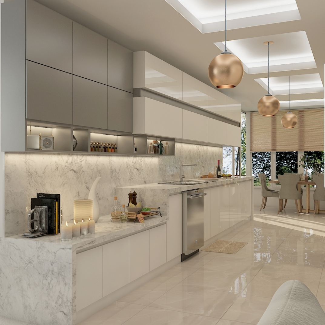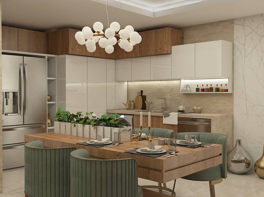 سبک مدرن بر سادگی، سطوح صاف، خطوط مستقیم و عملکرد بدون دستگیره (یا دستگیره‌های مخفی) تمرکز دارد. این سبک، انتخابی ایده‌آل برای فضاهای کوچک و کسانی است که به دنبال جلوه‌ای تمیز و به‌روز هستند.
