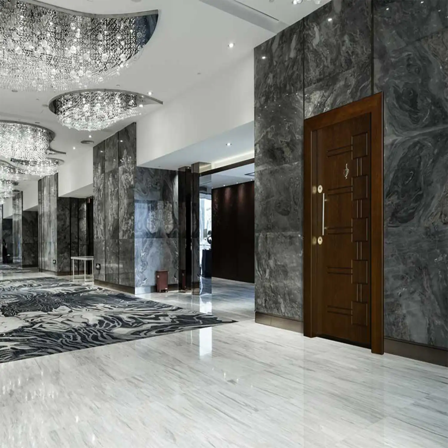 درب ضد سرقت حکاکی مدل K-218 با ابعاد استاندارد، روکش راش مقاوم، چهارچوب فلزی دو تکه و یراقآلات کاله ترکیه، امنیت و زیبایی ورودی ساختمان را تضمین میکند.