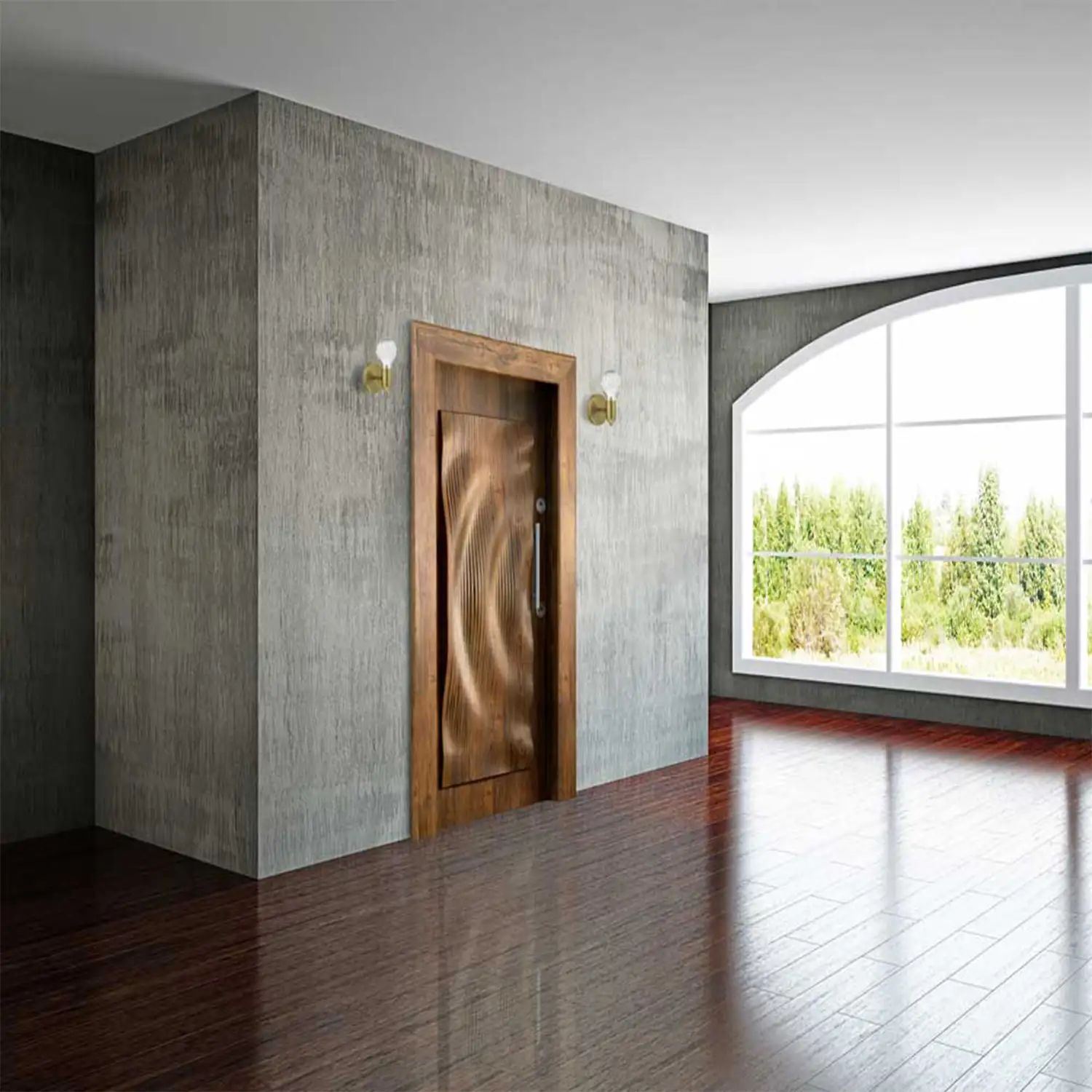 درب موجی دارای مبله (کاور دور درب) مدل دراگون است که نمایی مدرن و منحصر به فرد به درب میبخشد و هماهنگی کاملی با طراحی برجسته درب ایجاد میکند.